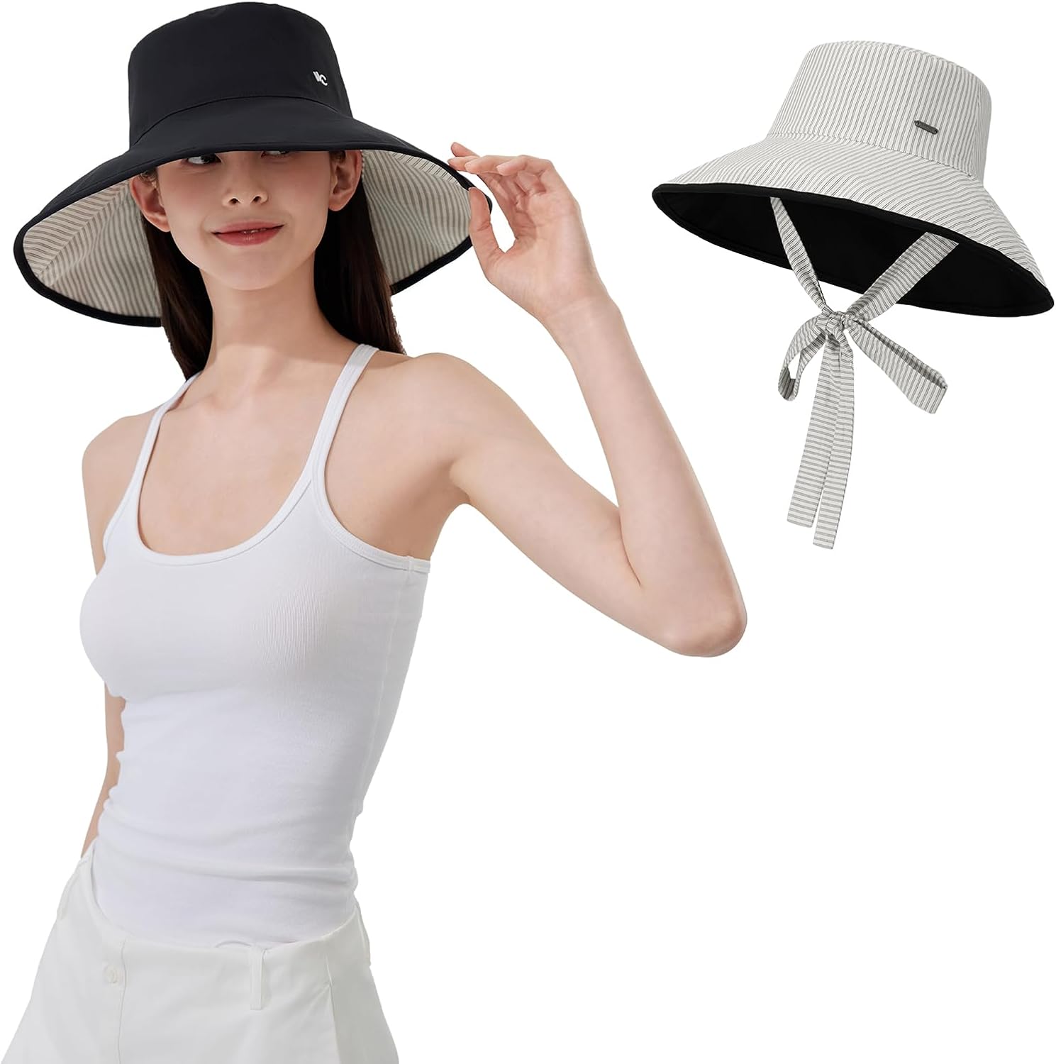 Wide Brim Sun Hats UPF 50+,UV Protection Waterproof Hiking Hat,Reversible Bucket Hat for Women Outdoor