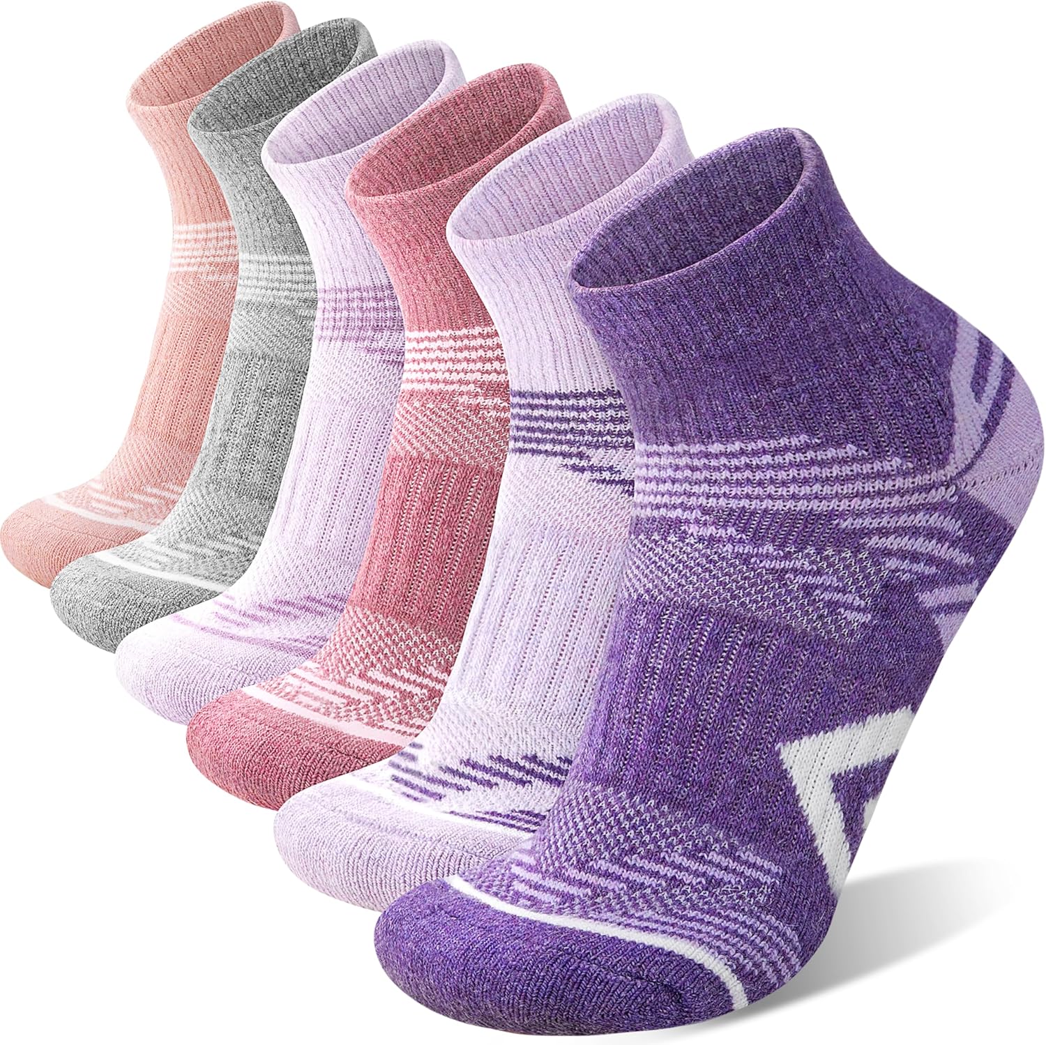 ANTSANG 6 Pairs Merino Wool Quarter Ankle Hiking Running Socks Compression Thermal Thick Cushion Socks for Women Men