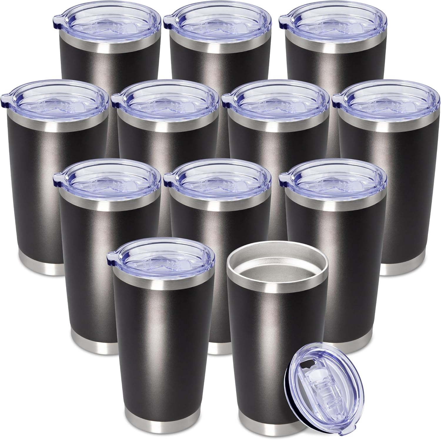 20 oz Tumbler Coffee Travel Tumblers Bulk with Lid Stainless Steel Double Wall Vacuum Insulated Mug Powder Coated Cups fit Car Cupholder for Hot and Cold - Black, 12Pack