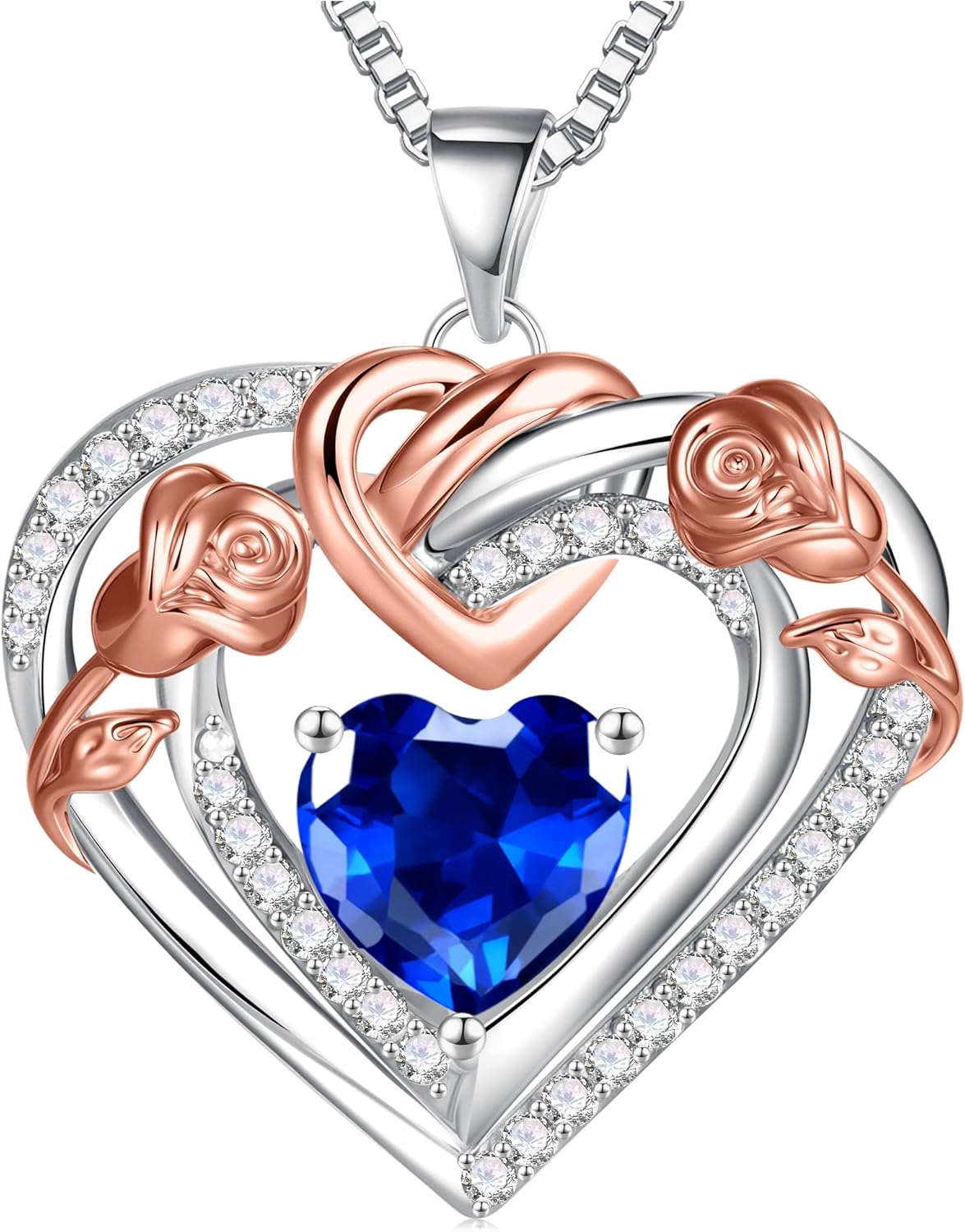 JKK Valentines Day Gifts for Mom - S925 Sterling Silver 12 Month Birthstone Necklaces Valentine's Day Mothers Day Birthday Christmas Gifts for Women Wift Mom
