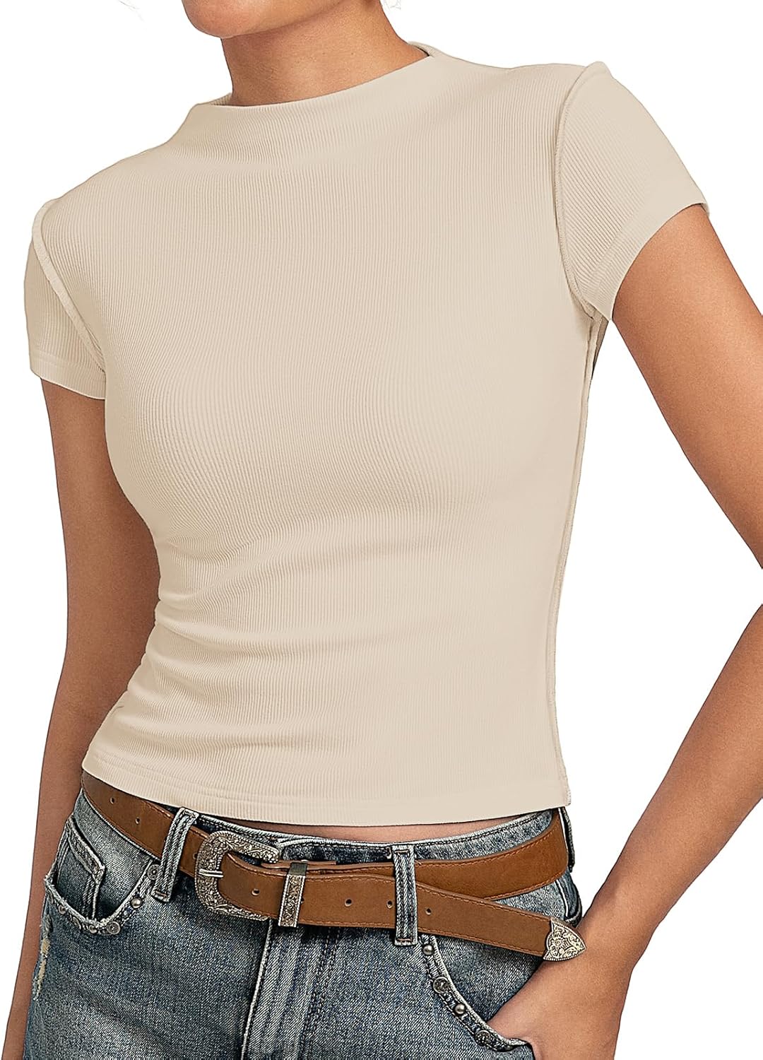 EasyGala Womens Double Lined Mock Turtle Neck Tops Slim Fitted Cap Sleeve Shirts Going Out Tees Y2k Summer Clothes 2025