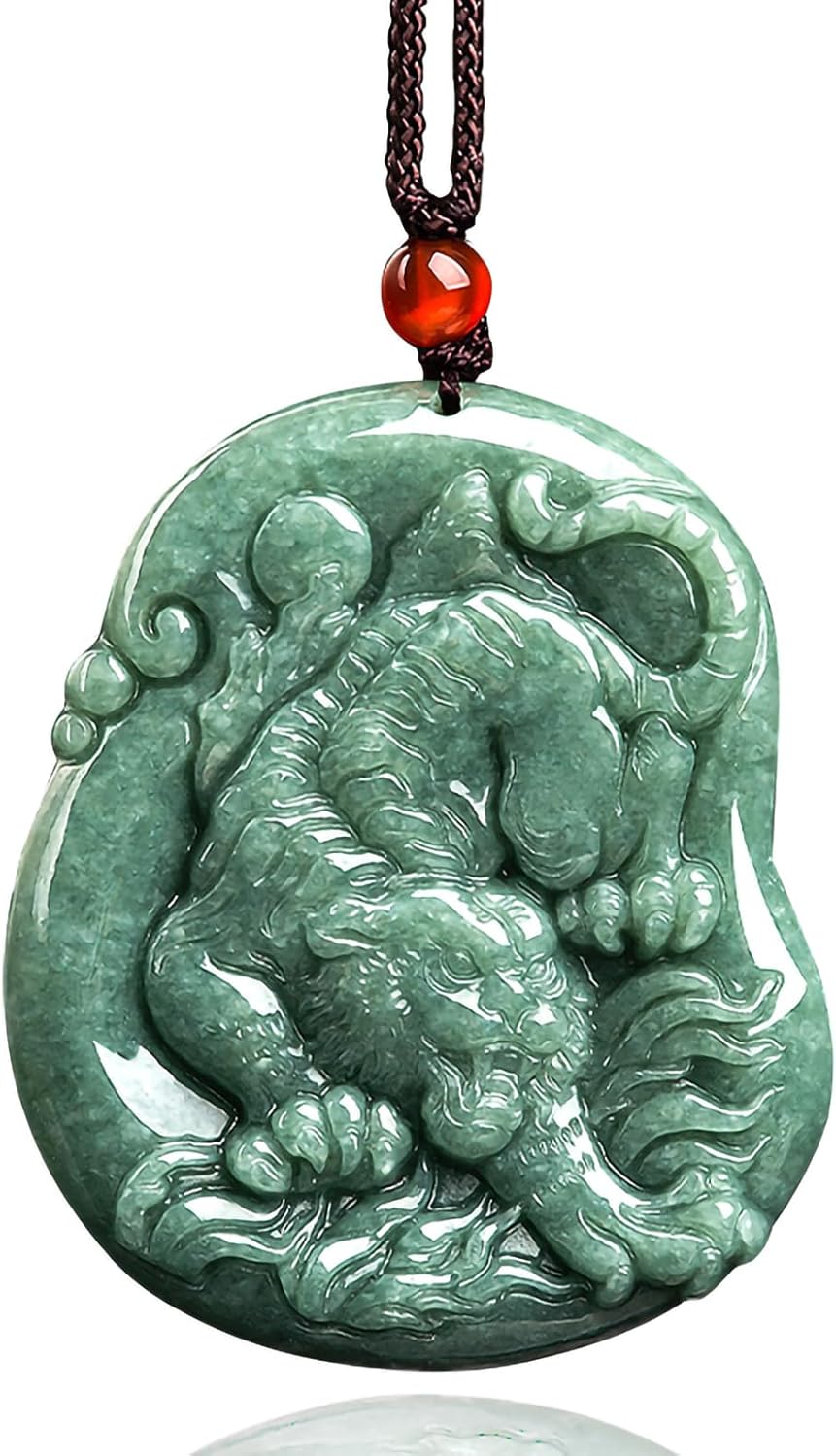 Hand-Carved Tiger Natural Jade Pendant Necklace for Men Women, Zodiac Stone Amulet Jewelry Accessories Necklace for Gifts