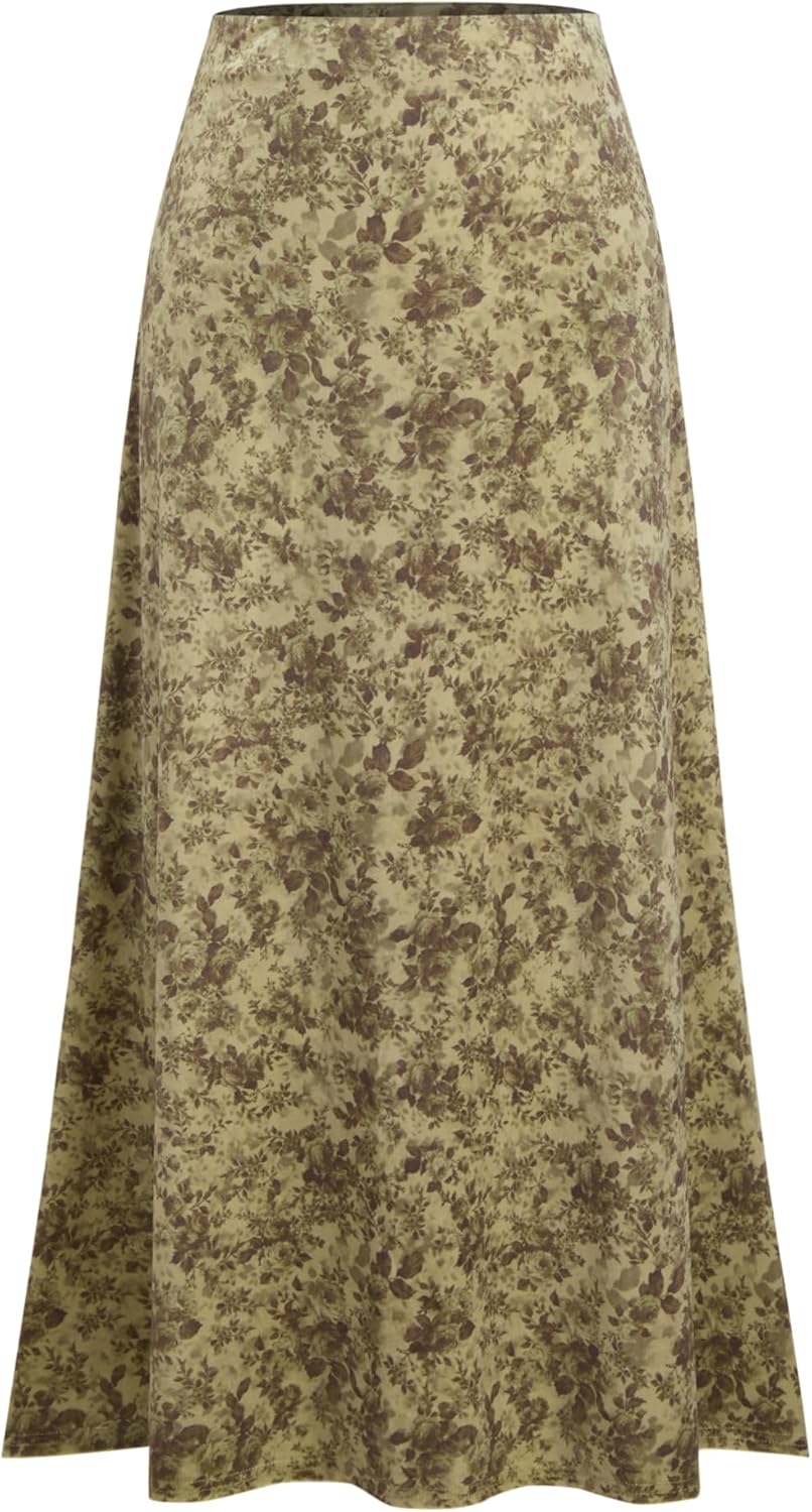 CIDER Skirt Maxi for Women Floral Print Velvet Mid Waist Long A Line Elegant Flowy Maxi Skirt