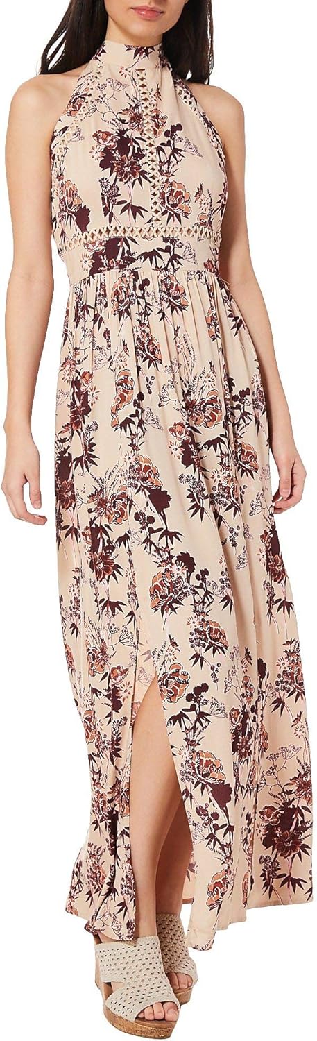 Angie Womens Halter Maxi Dress with Lace Insets