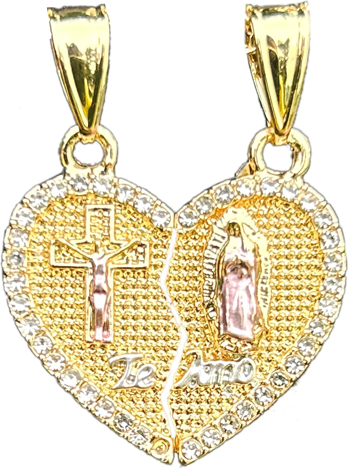 18K Gold Plated Couples Necklace Virgin Mary Necklace Jesus Necklace Heart Necklace Plated Gold Necklace Couple Jewelry for Him and Her (includes 2 necklaces)
