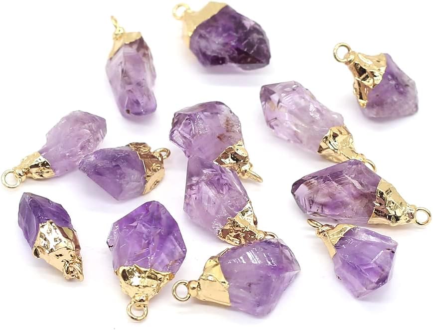 LHJ Natural Amethyst Stone Pendants Irregular Healing Purple Crystal Small Charms for Jewelry Making Meditation Decoration