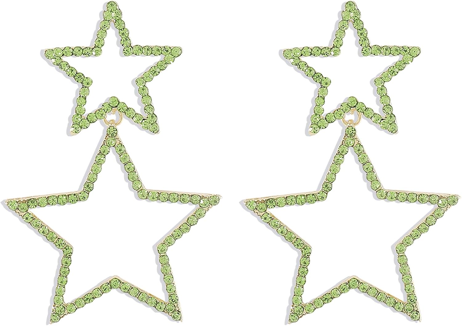 Star Earrings for Women Sparkle Rhinestone Big Star Drop Dangle Earrings Hollow Dangling Earrings Long Double Stud Earrings Jewelry for Lightweight Festival Birthday Party