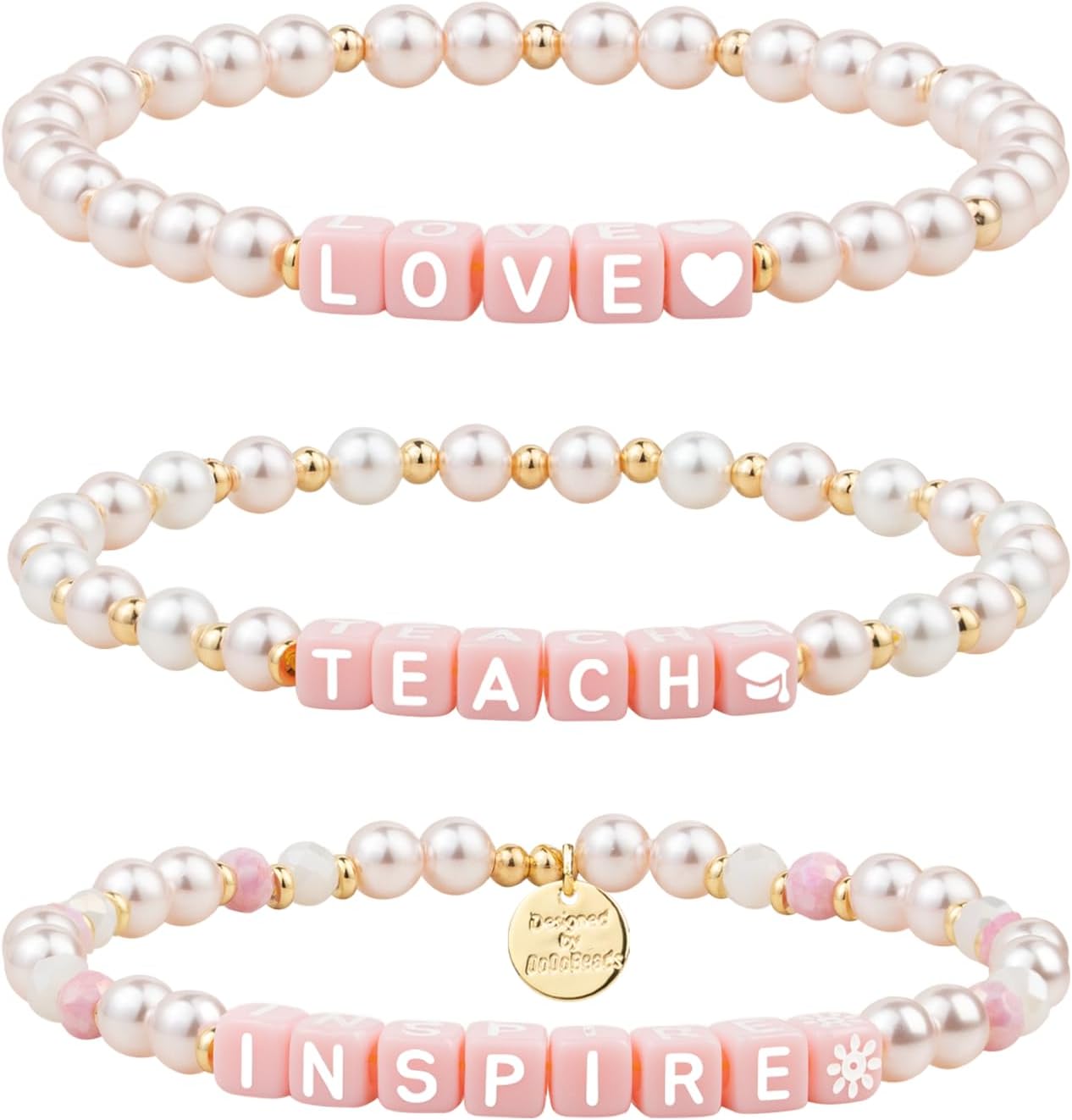 3pcs Teacher Bracelets for Women and Men, Beaded Teachers Bracelet, Teacher Appreciation Gifts with Gift Box