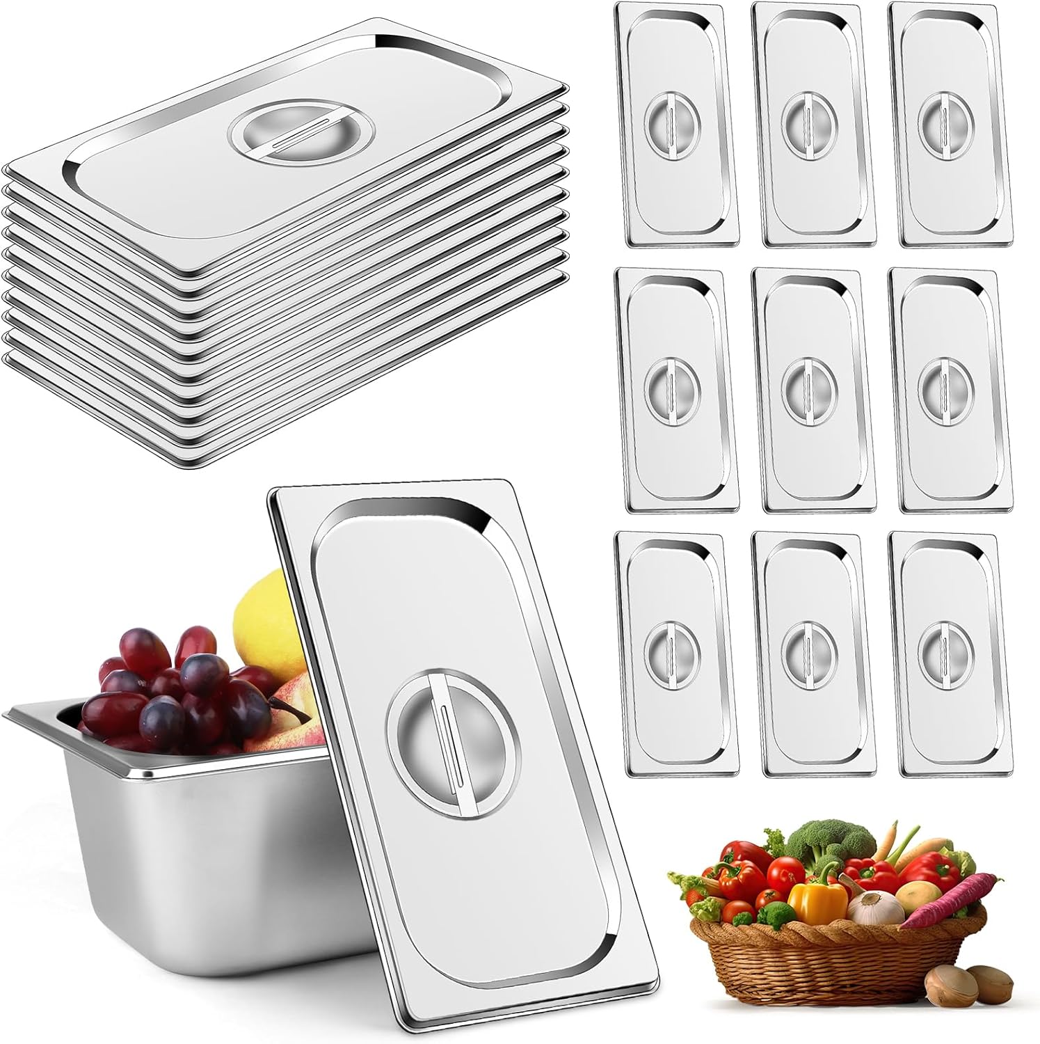 - 10-Pack Premium Stainless Steel Lids – Keep Food Fresh & Hygienic: The package comes with 10 pcs 1/3 size stainless steel hotel lids, which can prevent dust and moisture. Steam table pan covers in sufficient quantities can support your daily cooking and party needs