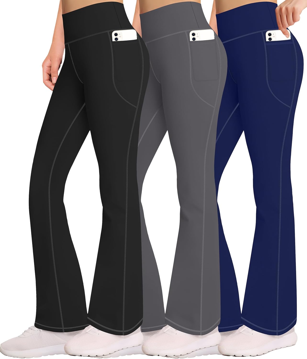 AENLLEY Girls Stretchy Flare Yoga Pants with Pockets - High Waisted Wide Leg Activewear Leggings for Kids