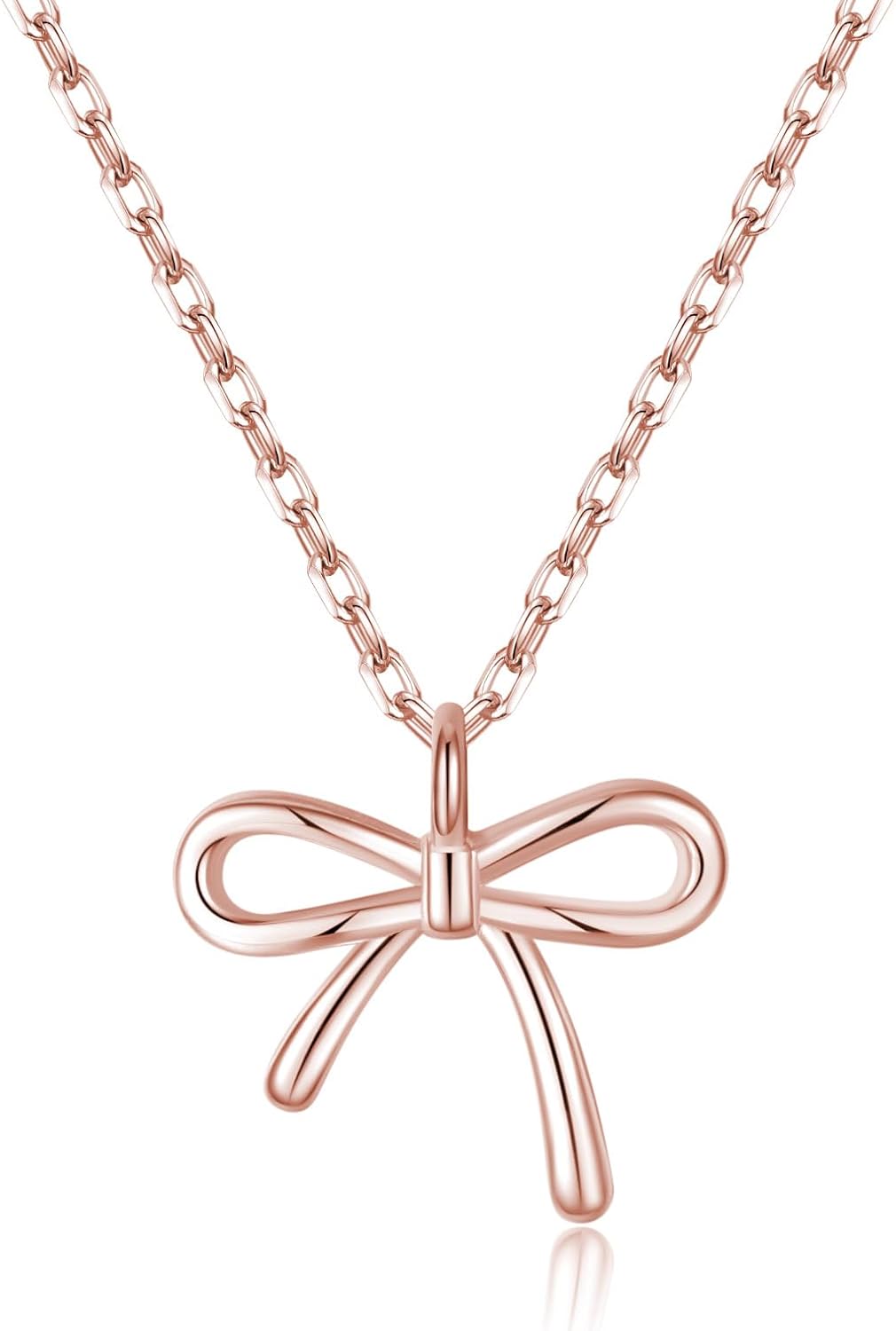 SLUYNZ Solid 925 Sterling Silver Bow Choker Necklace for Women Teens Simple Bowknot Pendant Necklace