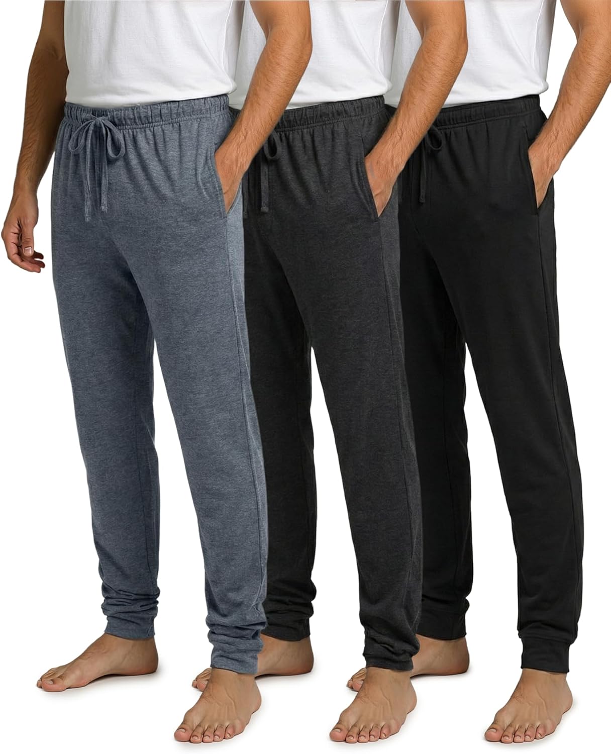 Real Essentials 3 Pack: Men's Ultra Soft Cotton Pajama Pants - Sleep Lounge PJ Joggers with Pockets (Available in Big & Tall)