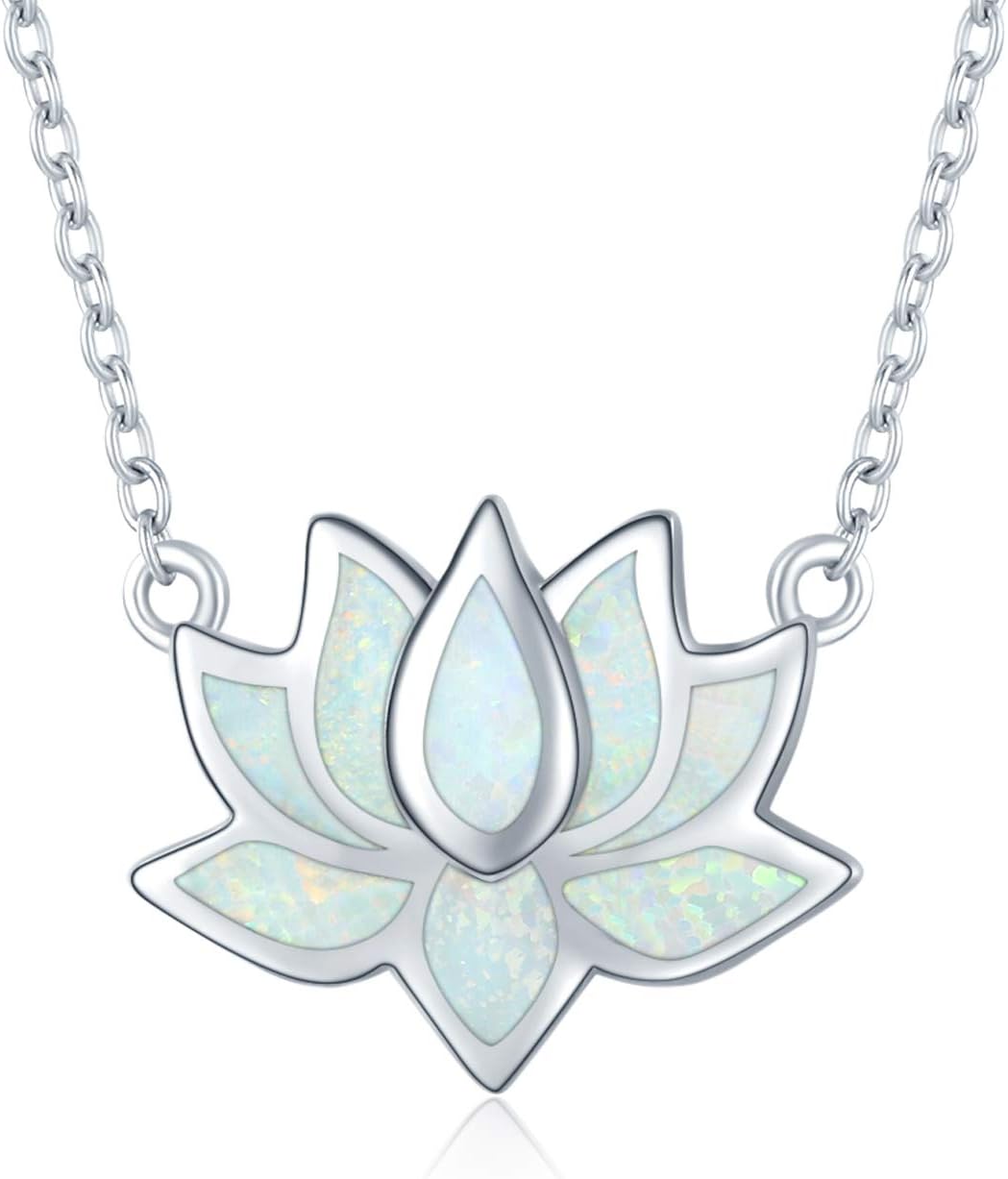 CUOKA MIRACLE Lotus Necklace 925 Sterling Silver Opal Pendant Necklace Lotus Flower Necklace Yoga Necklace Gift for Women Mom