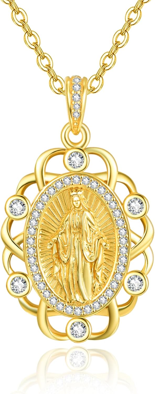 AENEAS Virgin Mary Necklace for Women Sterling Silver Virgen de Guadalupe Pendant Necklace Medalla de la Virgen Milagrosa Miraculous Medal Gift Jewelry for Her Mom Wife Birthday Christmas