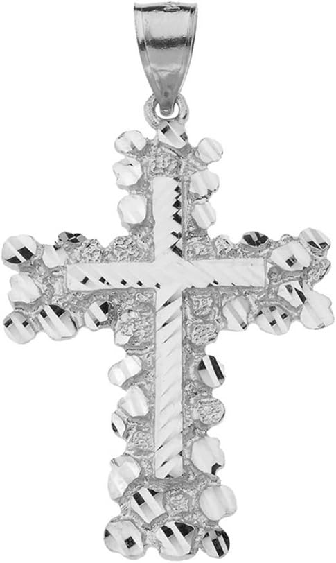 Solid 925 Sterling Silver Nugget Cross Crucifix Religious Pendant (Large)