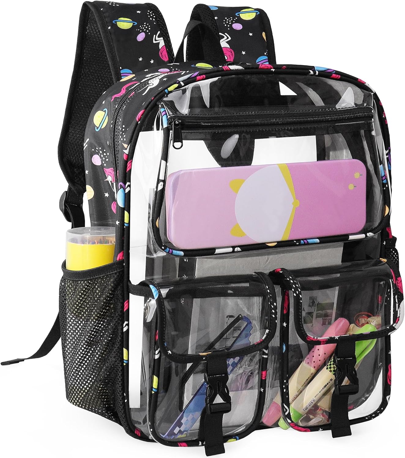 - Quick & Easy Security Checks with School Clear Backpack: The cute transparent backpack for kids with transparent design allows for instant visibility of contents, compliant TSA and back to school policy