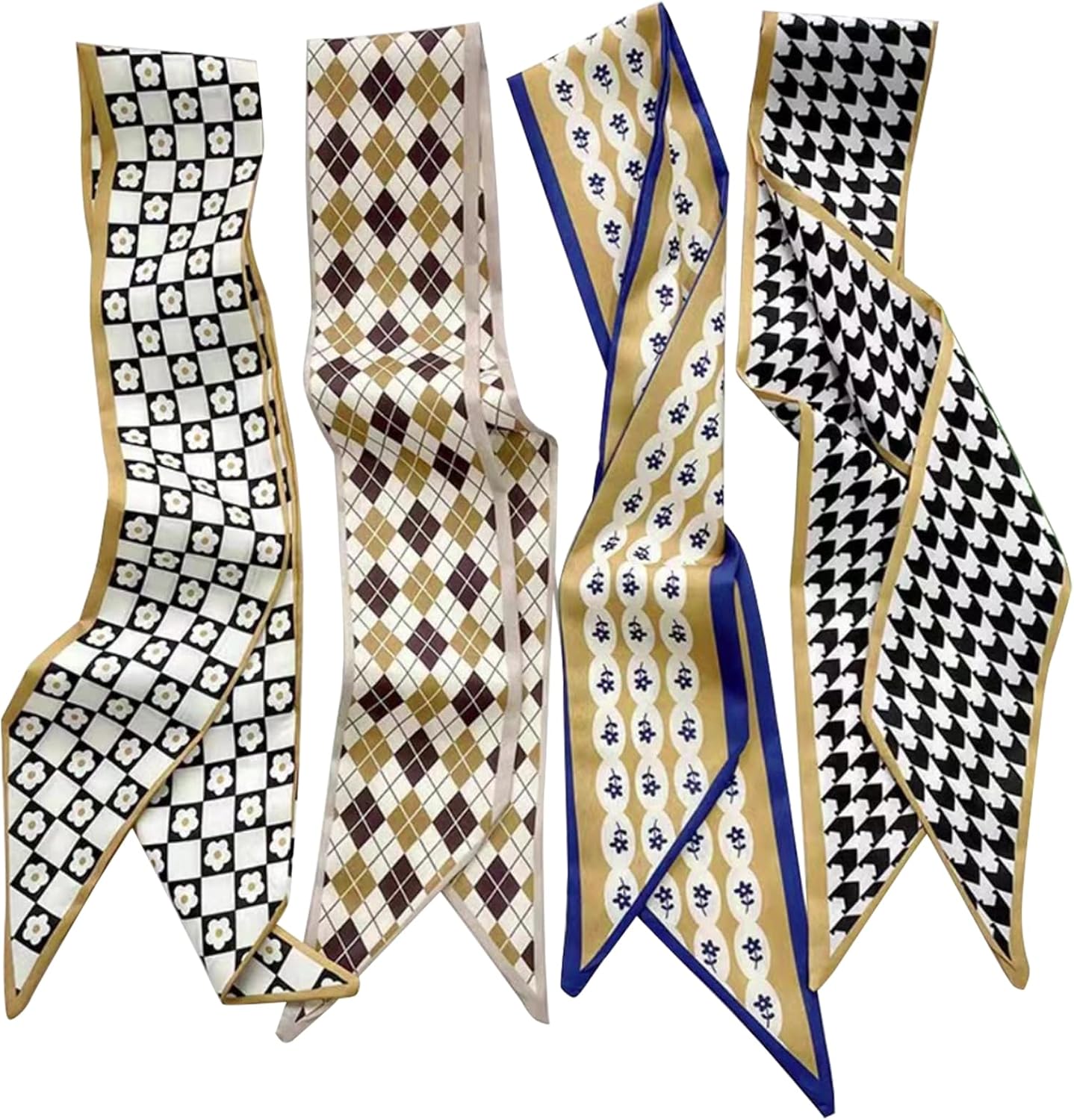 4Pcs Fashion Scarves for Women, Multifunctional Boho Scarves Headbands Satin Scarf for Bag Hair Accessories