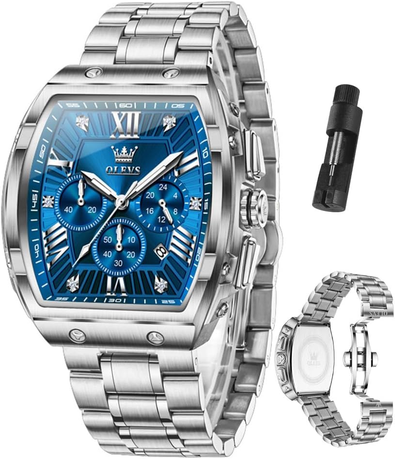 OLEVS Watches for Men Luxury Big Face Stainless Steel Mens Watches Classic Waterproof Analog Quartz Men's Wrist Watch with Date Multifunction Chronograph Dress Watch for Men Relojes para Hombres