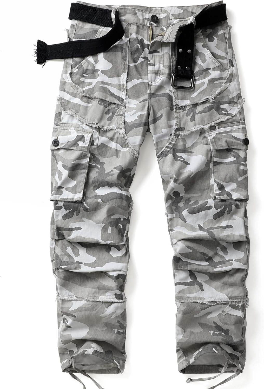 Men's Camo Cargo Work Pants Raw Edge Cotton Casual Streetwear Ripstop Outdoor Trousers with Multi Pockets