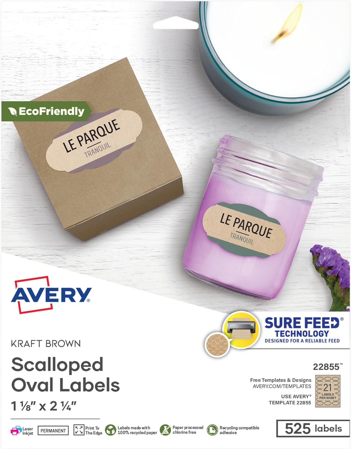 Avery Kraft Brown Scalloped Oval Labels with Sure Feed Technology, 1-1/8" x 2-1/4", Print to The Edge, Laser/Inkjet Printable Labels, 525 Total (22855)