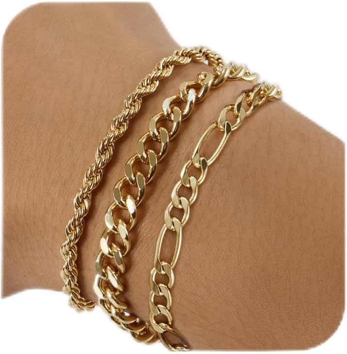 3 PCS Silver Bracelets for Men 925 Sterling Silver/14K Gold Palted Cuban Link Chain Bracelet Figaro Rope Bracelet Set Mens Jewelry Gifts for Dad Husband Boyfriend 7.5/8.2 Inches