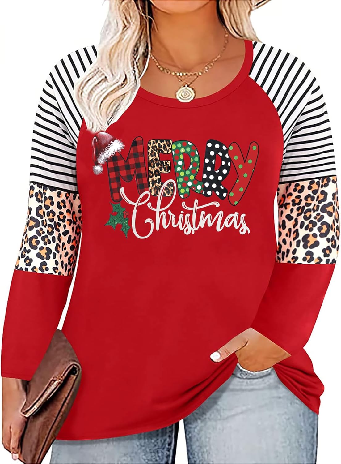 Plus Size Merry and Bright Christmas Shirt for Women Xmas Leopard Tree T-Shirt Merry Christmas Shirts Tops