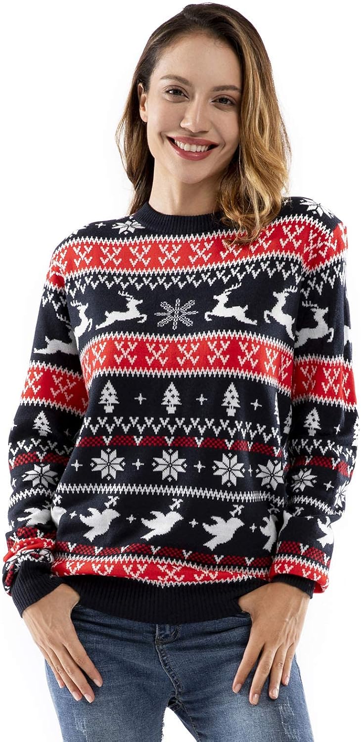 Ugly Christmas Sweater for Men, Reindeer Unisex Women Xmas Fairisle Classic Pullover for Party Festive Party