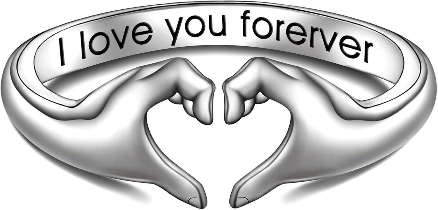 Heart Gesture Ring for Women - 925 Sterling Silver Heart hands Ring with The Letters of I Love You Forever | Jewelry Gifts Symbolizing Love or Friendship for Women and Star's Fans