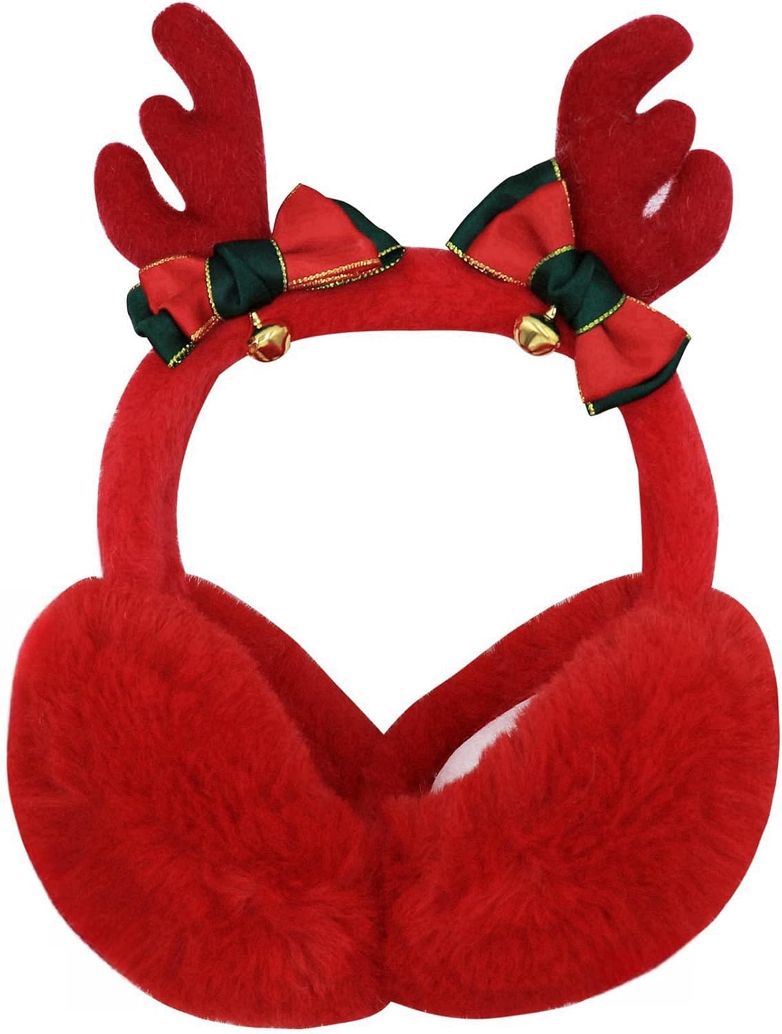 Kids Winter Earmuffs Plush Faux Fur Cute Reindeer Antlers Ear Warmer Christmas Earflap for Women Girls
