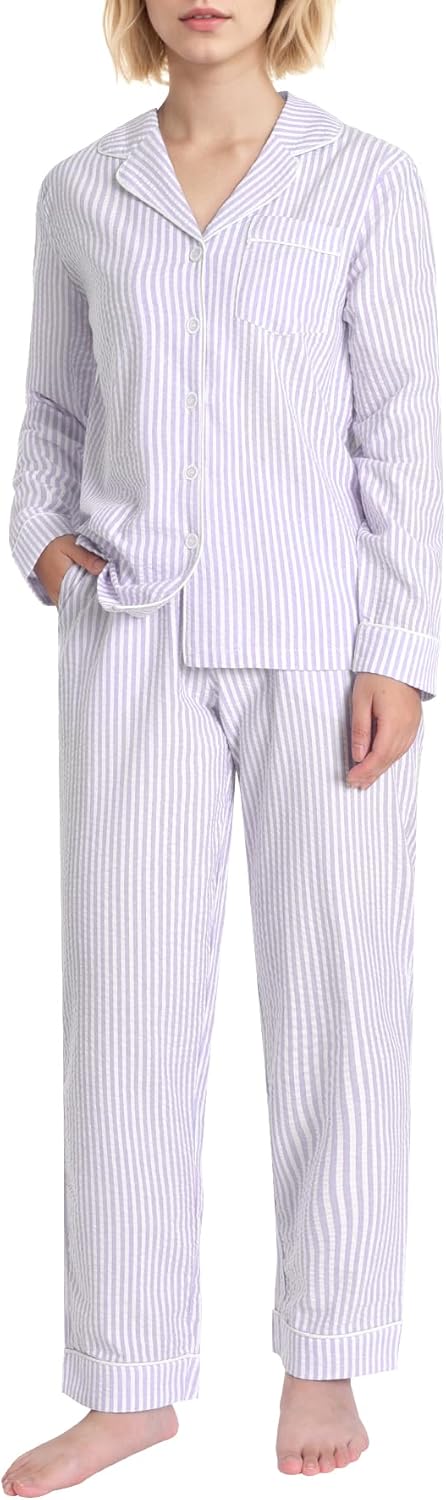 Women's Petite Pajama Set Petite Size Cotton Seersucker Pjs