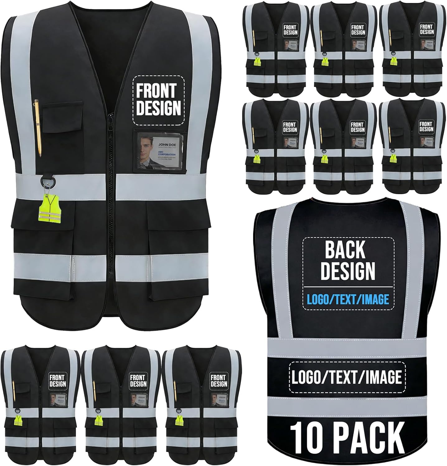 BeautyWill Custom Safety Vest Customized Logo Class 2 High Visibility Reflective Vest with Pockets Construction workwear