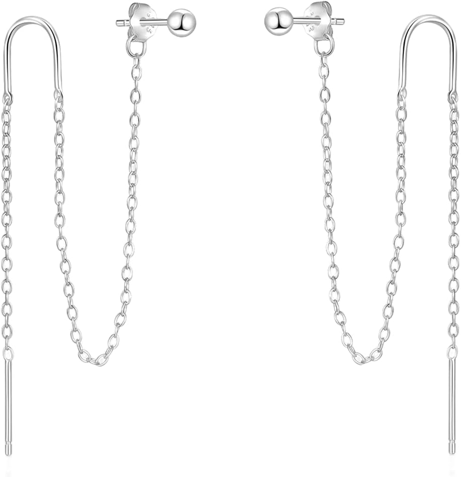 Sterling Silver Threader Chain Earrings for Women Girls Long Chains Tassel Dangle Drop Double Piercing Studs Earring Hypoallergenic Cute Birthday Holiday Travel Accessories Jewelry Gifts