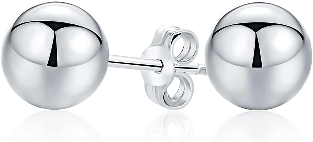 Minimalist Plain Simple Round Bead Ball Tragus Cartilage Stud Earrings For Women For Teen Shiny Polish .925 Sterling Silver 2-10 MM Sizes