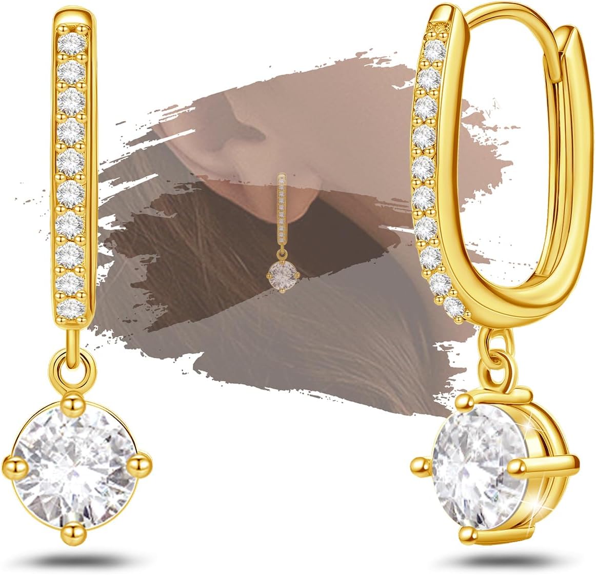 Sterling Silver U Hoop Earrings for Women Trendy Hypoallergenic Sparkle Round Cubic Zirconia U-Shaped Dangle Hoop Earring for Sensitive Ears Lightweight Dangling Loop Earrings Fashion Jewelry Gifts for Her