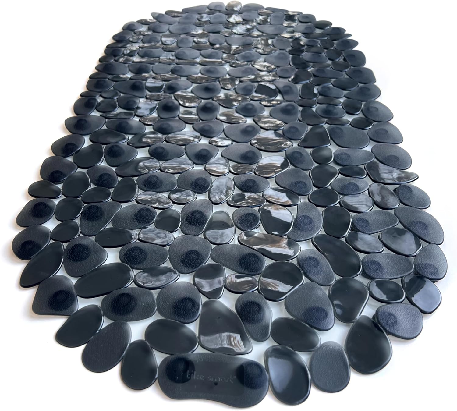 “Pebbles” Non-Slip Bathtub & Shower Mat 27”x14” Oval - Non-Toxic - Safe, Clean, Machine-Washable, Superior Grip & Drainage, Vinyl, for Smooth Floors ONLY, Transparent Black