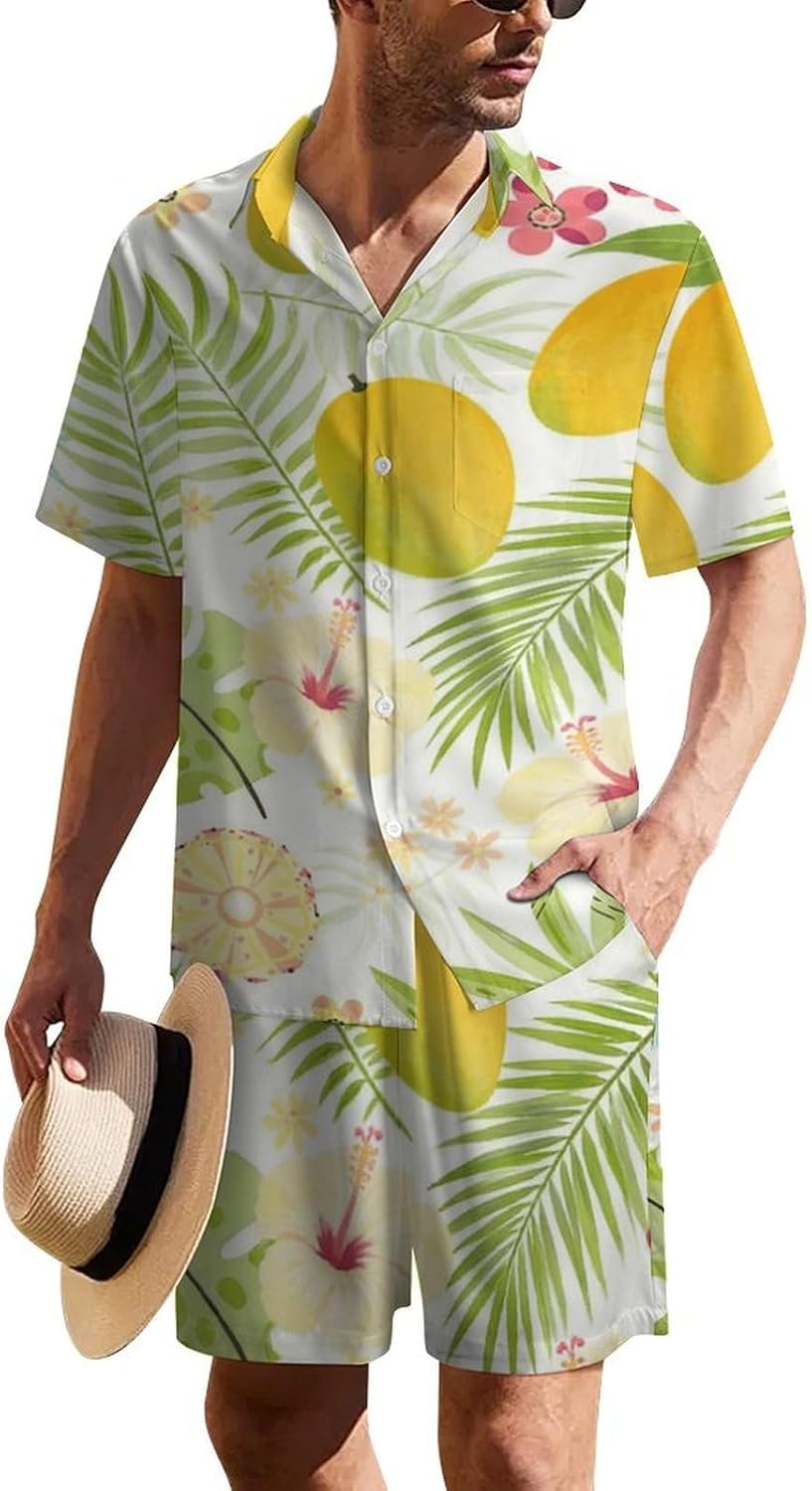 Men's Hawaiian Matching Set, Summer Beach 2 Piece Vacation Outfits, Tropical Shirt and Shorts Sets Button Down