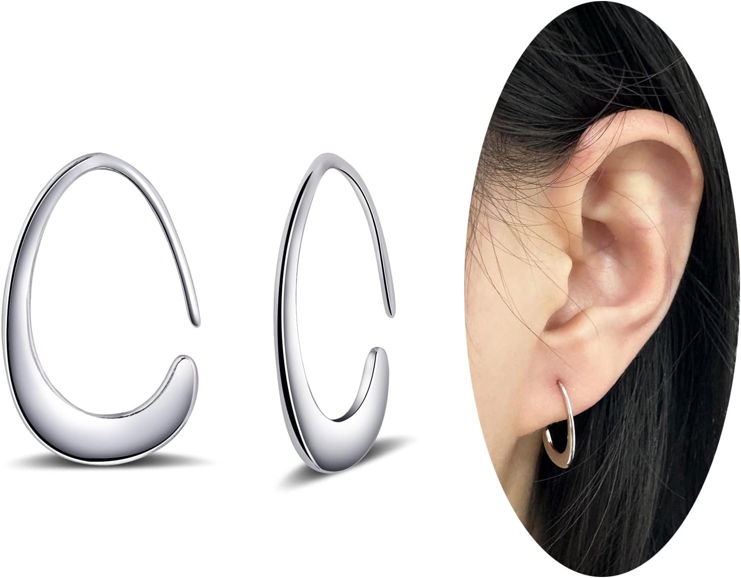 Tiny Pull Through Earrings Small Teardrop Hoop Earrings 925 Sterling Silver Drop Dangle Earrings for Women Trendy -Silver & Gold