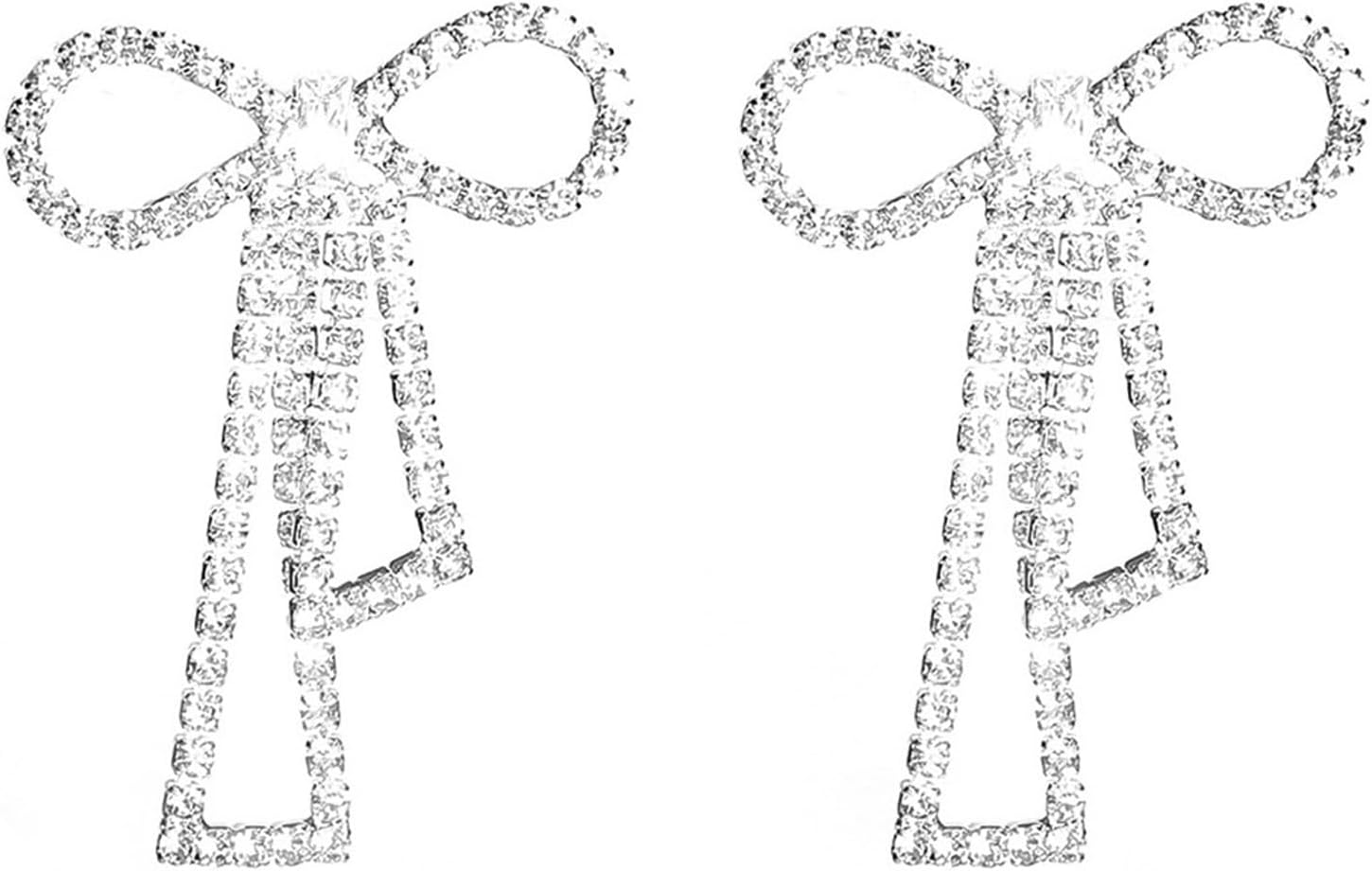 Bow Earrings for Women Rhinestone Long Tassel Earrings Ribbon Bow Drop Earring Silver Stainless Steel Dangle Earrings Cute Sparkly Jewelry