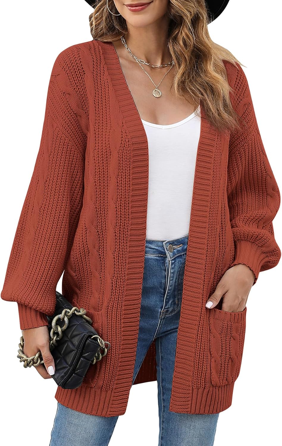 Women's Cable Knit Cardigan Sweaters Open Front Long Sleeve Oversized Cardigans Chunky Fall Pockets Outerwear
