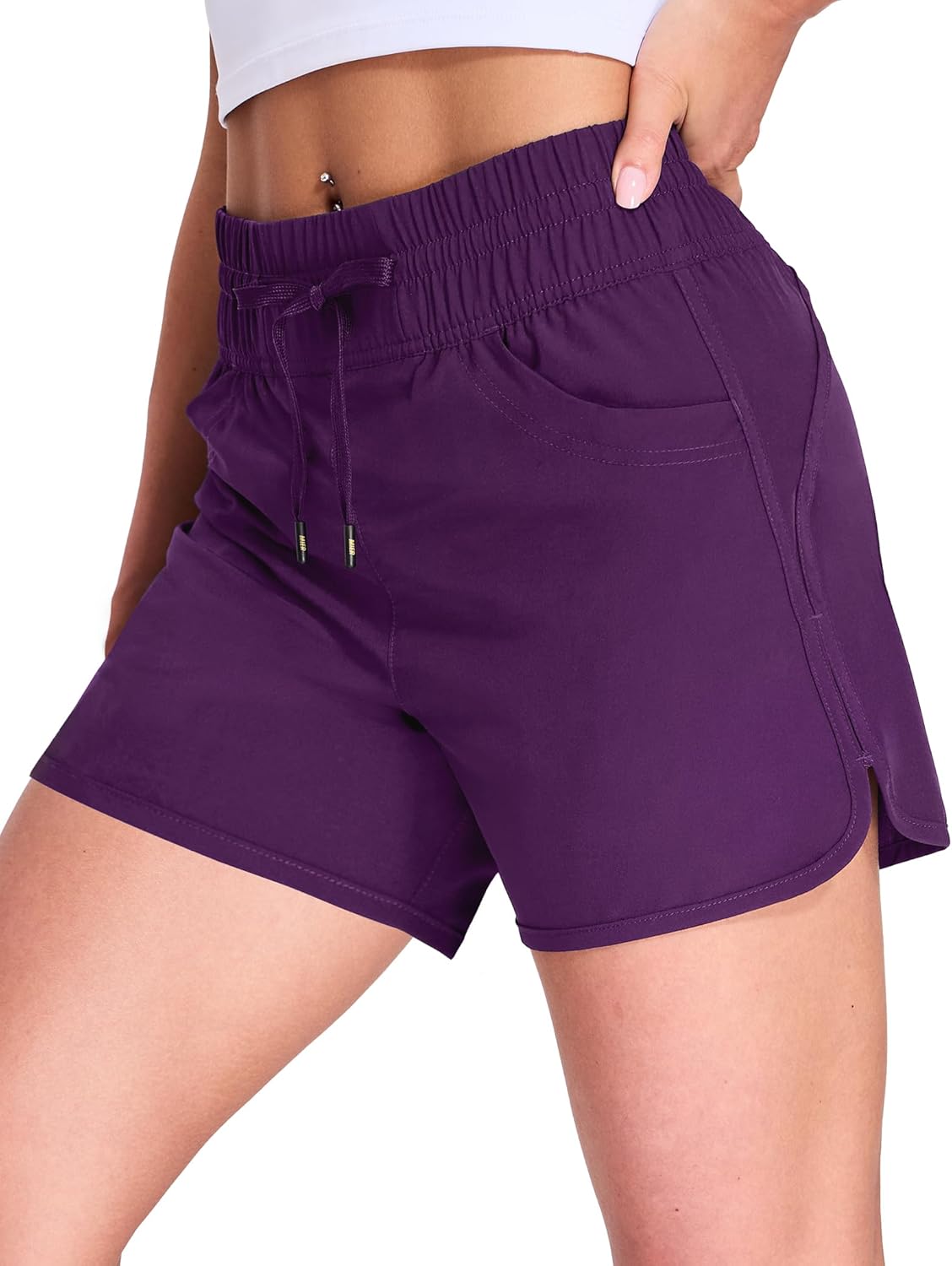 MIER Women's Running Shorts Quick Dry Athletic Workout High Waisted Active Shorts with Liner Zipper Pocket 4 Inch