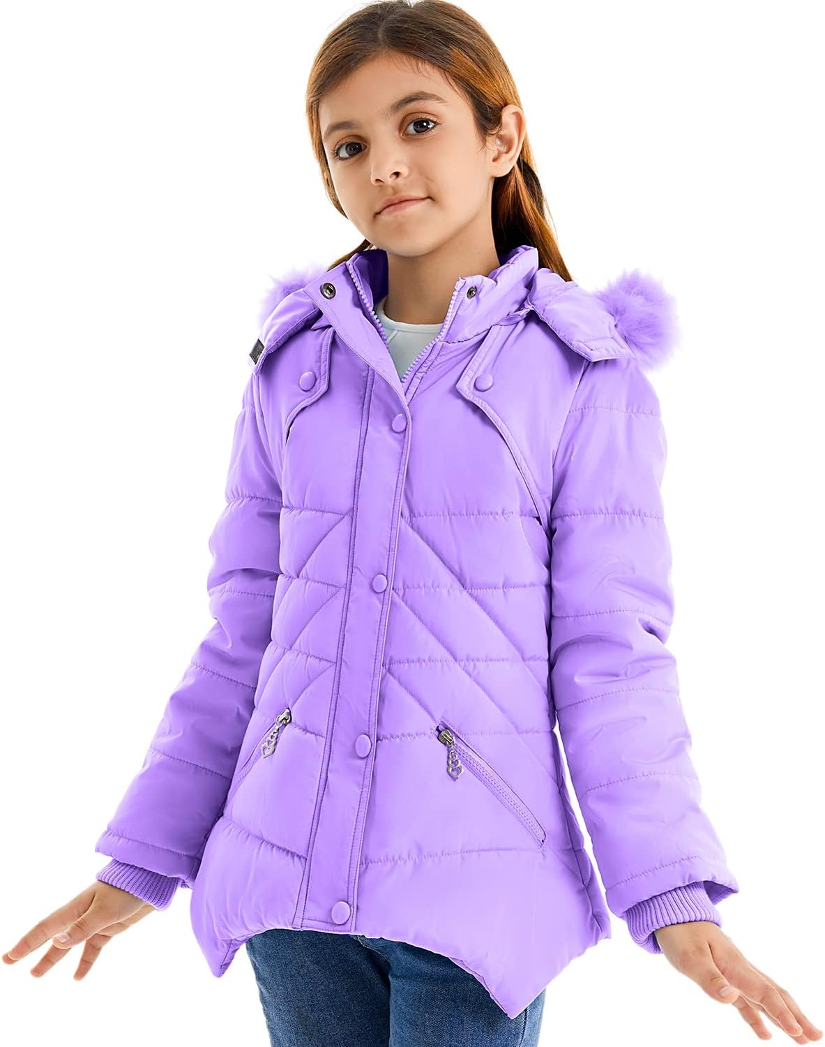 FARVALUE Girls' Winter Coats Fur Hooded Warm Puffer Jacket Coat with Fleece Lined