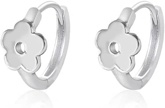 Minimalist Flower Small Hoop Earrings for Women Girls 925 Sterling Silver Hypoallergenic Dainty Tiny Huggie Hoops Cartilage Earrings Cute Birthday Holiday Jewelry Gifts