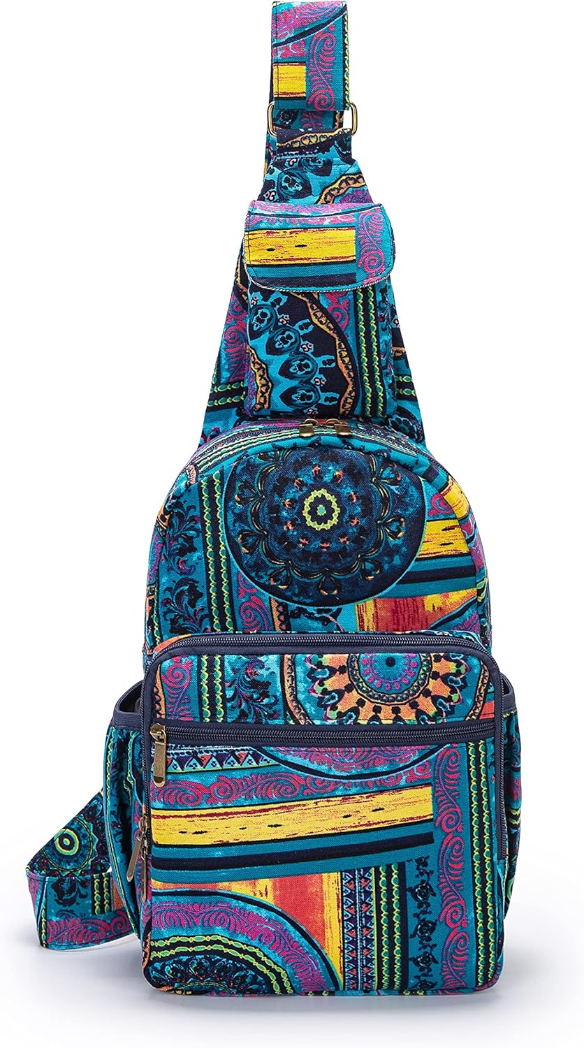 Coton Pose Women sling bag Elephant canvas large boho backpacks bohemian Crossbody Bag (green purple)