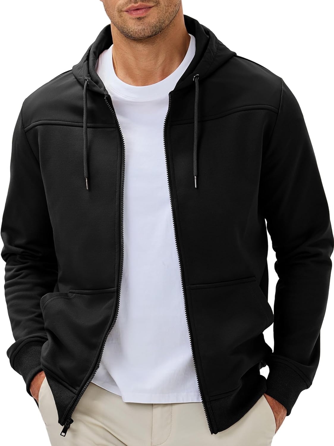 JMIERR Men Hoodie Zip Up Casual Drawstring Hooded Jacket with Pockets Workout Hiking Sweatshirt