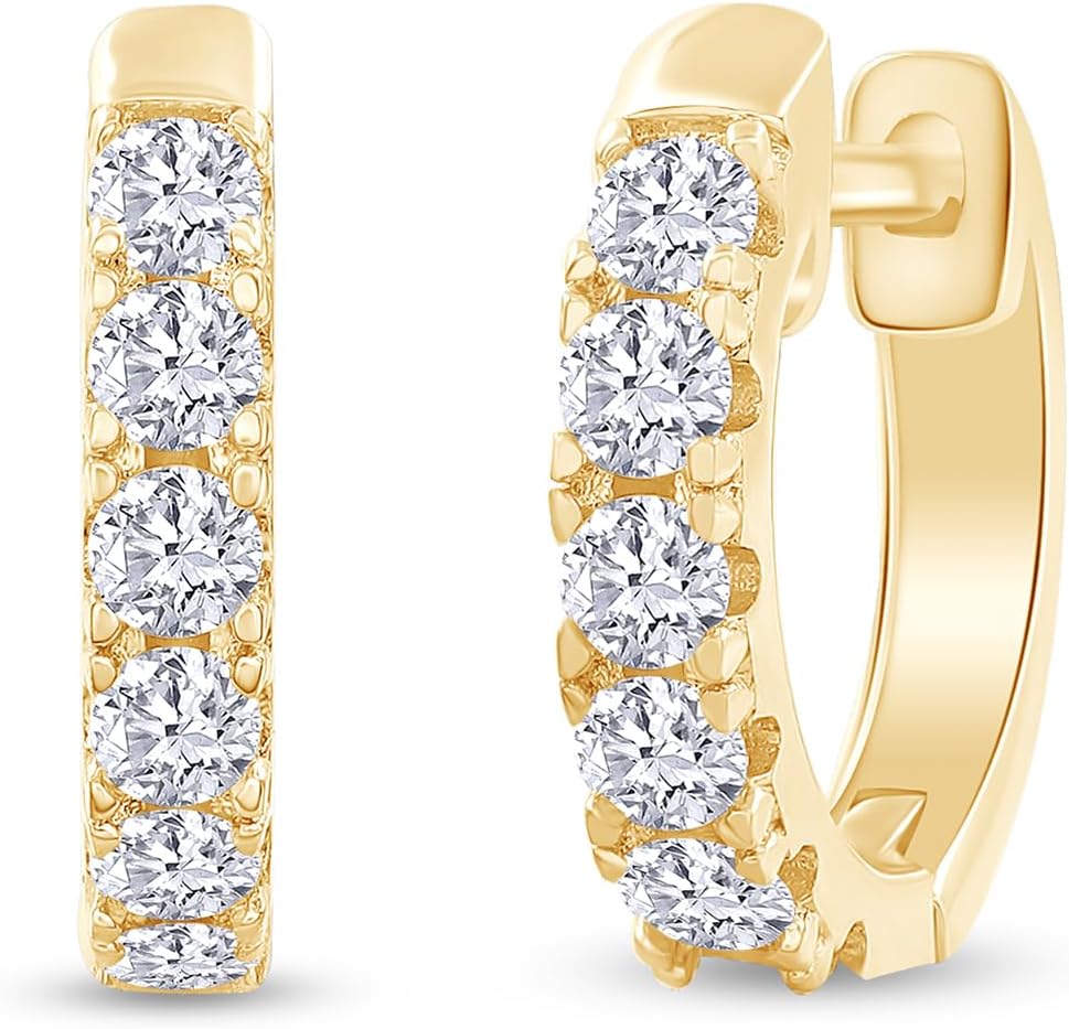 Huggie Hoop Earrings for Women 2MM Round Moissanite Diamond Cuff Earrings in 18K Gold Plated Trendy Jewelry Gifts For Her