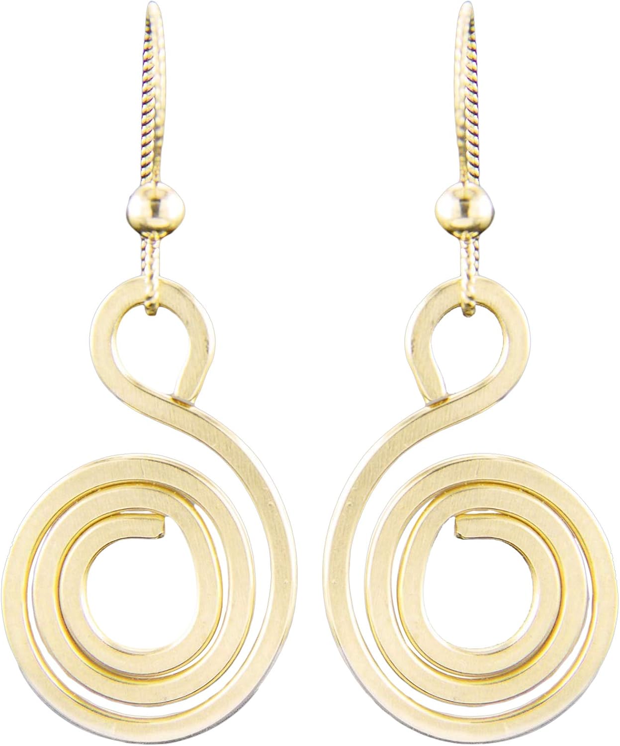 Cute Geometric Spiral Circle 14K Yellow Gold-Filled Dangle Earrings Fun Jewelry Gift Idea for Women (Gold)
