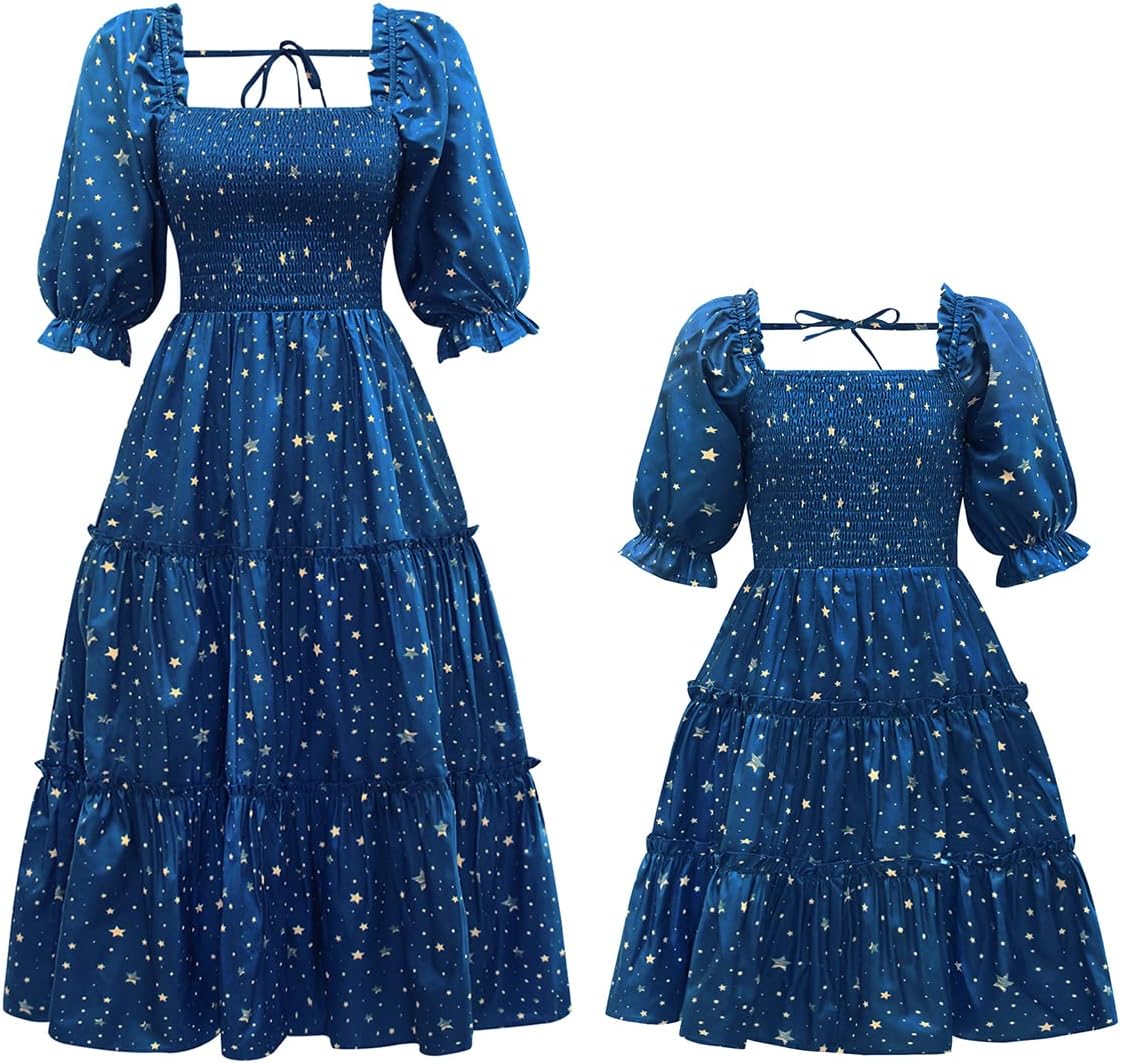 Mommy and Me Matching Dresses Floral Printed Ruffled Lantern Sleeves A-Line Long Dress Mom Daughter Matching Outfits