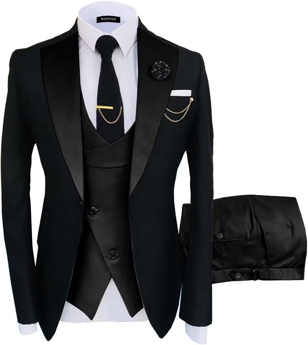 Wangyue Mens Suit 3 Piece Slim Fit Suits for Men Wedding Prom Tuxedo for Men Formal Business Suit