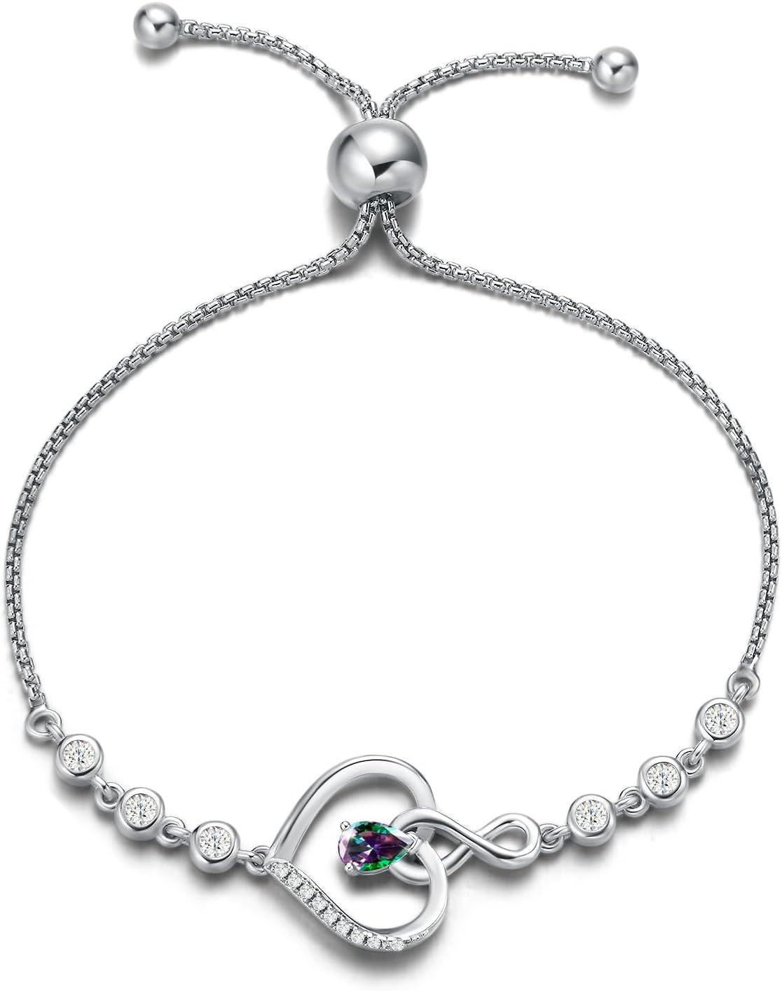 AGVANA Valentines Day Gifts Heart Birthstone Bracelets for Women Sterling Silver Genuine or Created Gemstone Tennis Bracelet Infinity Love Jewelry Anniversary Birthday Gifts for Wife Mom Women