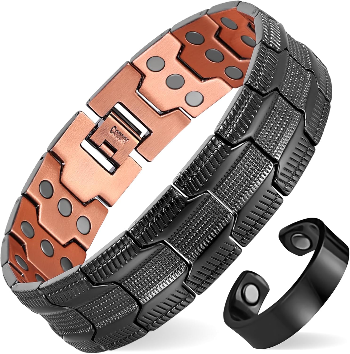 MagEnergy Copper Bracelet for Men, 3X Strength Magnetic Bracelet with 99.99% Pure Copper Ring & 3500 Gauss Magnets, Adjustable Length with Sizing Tool